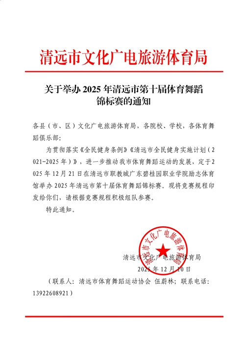 2025年清远市第十届体育舞蹈锦标赛暨“奔跑吧·少年”第三届中小学生体育舞蹈锦标赛